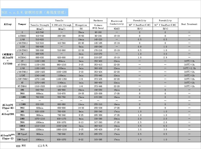 在連接器,開關(guān),繼電器等電子零部件方面被廣泛使用.NGK鈹銅備齊各種不同的合金,規(guī)格,可提供帶材,板材,棒材,線材.